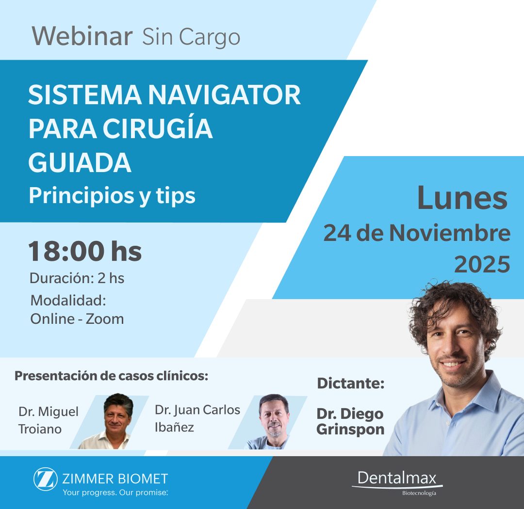 Participe del seminario web sin cargo que desarrollarán el Dr. Diego Grinspon, el Dr. Miguel Troiano y el Dr. Juan Carlos Ibañez sobre el Sistema Navigator de Cirugía Guiada de Zimmer Biomet.